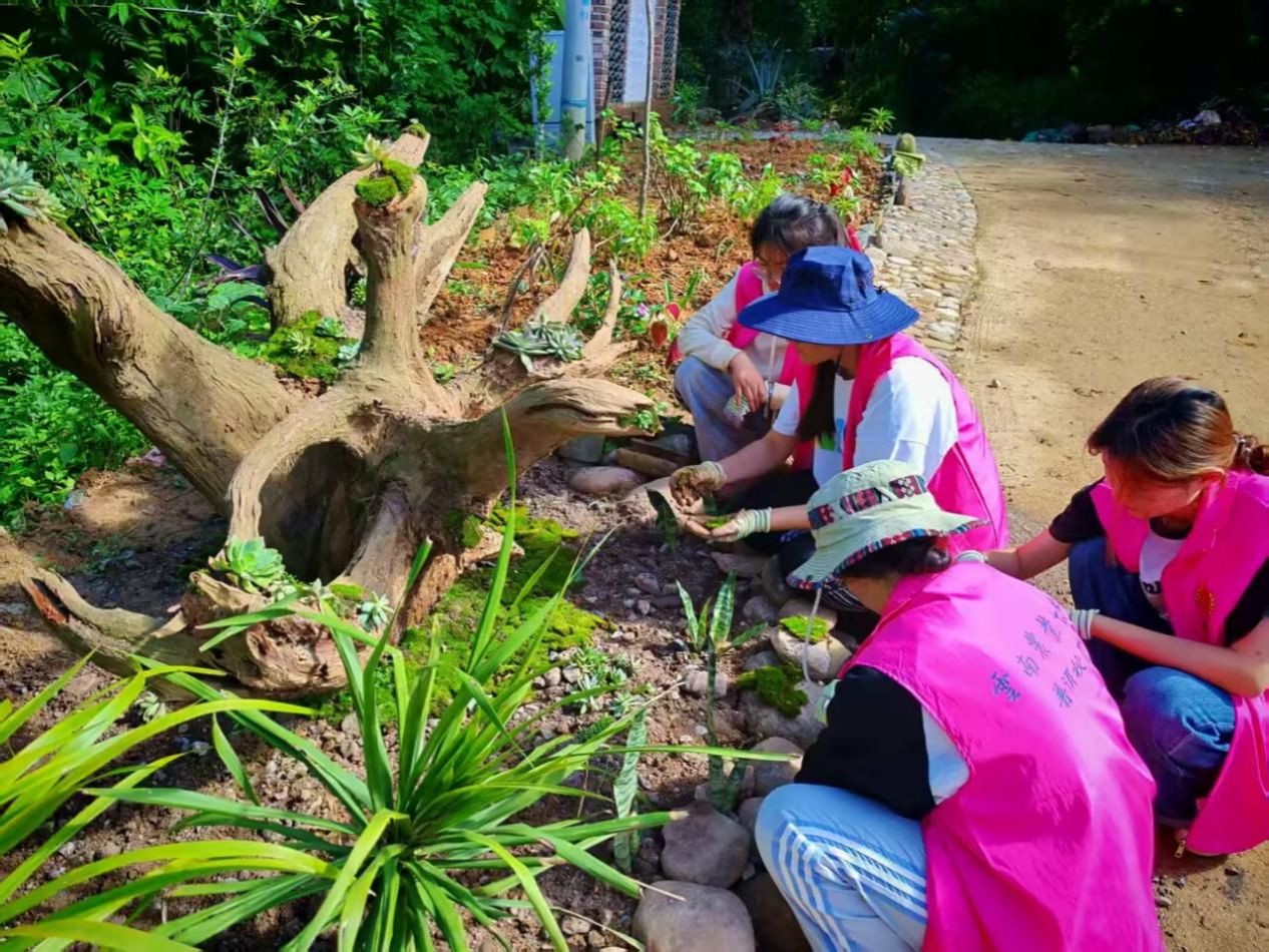 师生紧扣 “变废为宝、就地取材” 研讨,攻克废弃物艺术转化、乡土植物景观搭配等问题,确定 “低成本、高颜值、可持续” 的景观建设方案。7 月 7 日至 9 日,团队联合村民以村民小组入口为切入点,将回收材料制成两处兼具实用与观赏性的景观小品,为村庄注入生态活力与人文气息,也为全村景观提升打下基础。