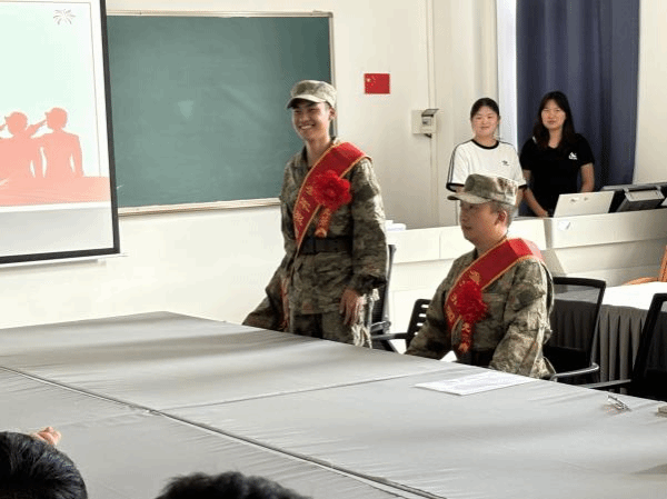 随后各位老师为入伍新兵佩戴了光荣花和入伍纪念品,鲜红的光荣花映衬着学子们坚毅的脸庞,也承载着学校的殷切期望。