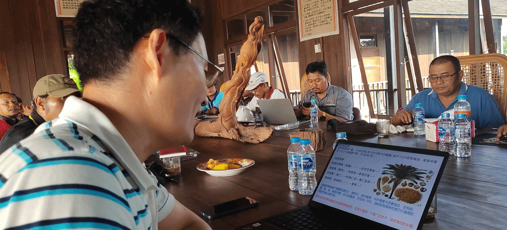 访问期间,代表团通过多种形式开展交流。7月21日上午,在聚龙集团农业总监皮金鹏陪同下,代表团与坤甸市古布拉雅县油棕种植园局局长埃德鲁斯等座谈,交流油棕种苗培育、智慧油棕园技术应用等内容。