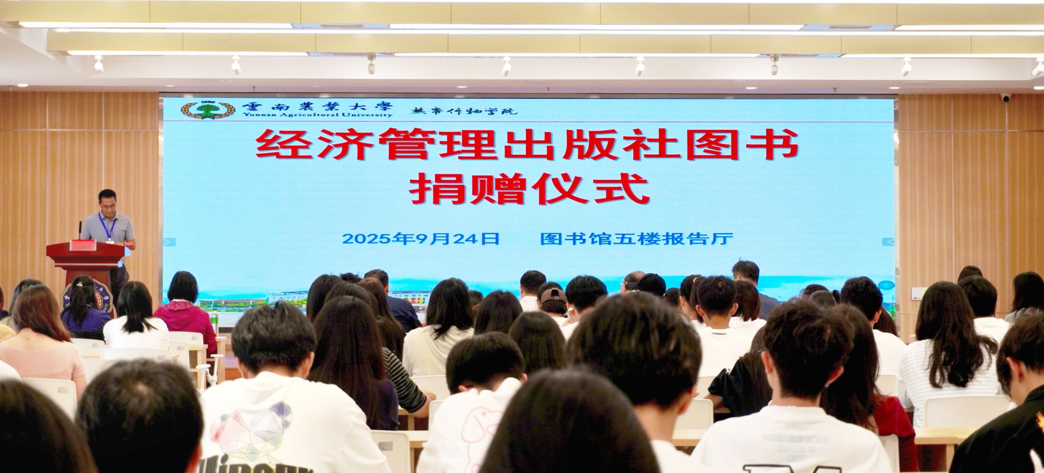 2025年9月24日,经济管理出版社图书捐赠仪式在bat365中文官方网站图书馆五楼报告厅举行,经济管理出版社经世分社社长曹靖、民盟中国社会科学院委员会主委王昌海、云南农业大学图书馆馆长李朝仙、bat365中文官方网站院长杨学虎及相关部门负责人、师生代表共200余人参加了此次仪式。