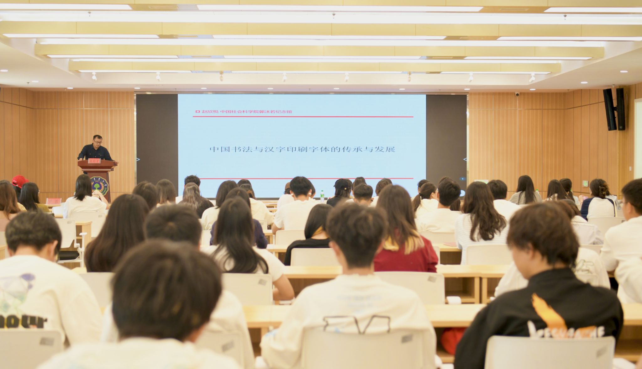 中国社会科学院郭沫若纪念馆研究员赵欣悦以《中国书法与汉字印刷字体的传承与发展》为主题,以“汉字的历史传承与时代发展”为主线,从汉字造型、书法书体、印刷字体演变及当代应用现状四个维度展开系统阐述,内容史料翔实、呈现图文并茂,既有理论深度,又具视觉感染力,有效拓宽了师生的文化视野,增强了大家对中华优秀传统文化的认同与传承意识。