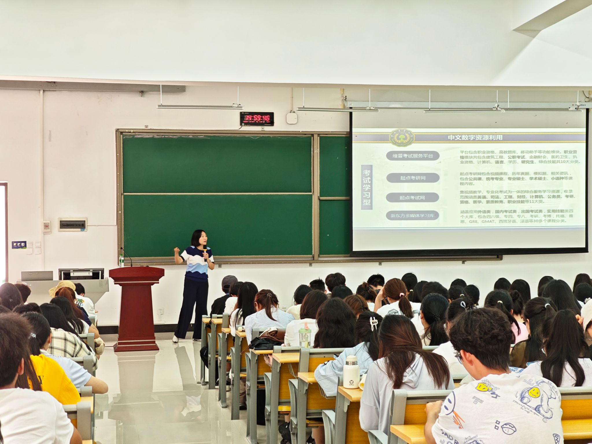 2025年9月24日,bat365中文官方网站围绕“中华优秀传统文化传承”与“图书馆资源高效利用”主题举办专题报告,报告分为两个会场同步进行,共计440余名学生参加。
