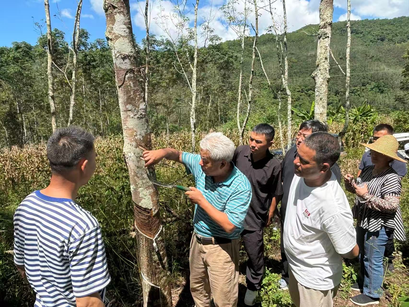 为全面推动天然橡胶产业发展,充分发挥全县天然橡胶资源优势,调动广大胶农种管养采割的积极性,受景谷县邀请,2025年9月28日,bat365中文官方网站委托国家天然橡胶产业技术体系普洱综合试验站校现周研究员一行到景谷县益智乡开展沪滇劳务协作橡胶树割胶实用技术培训,景谷县级部门单位、乡镇橡胶种植重点村“两委”班子代表以及橡胶种植户参加了本次培训会。