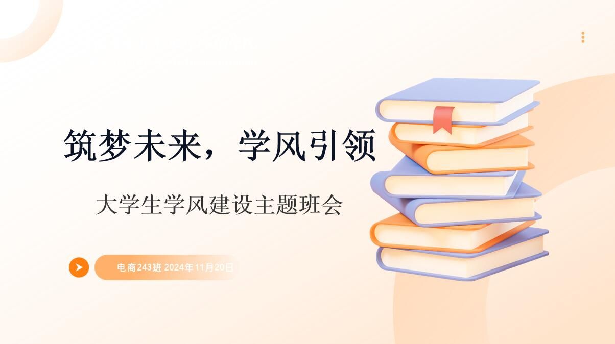 在秋意渐浓的季节里,为了进一步加强学风建设,营造积极向上的学习氛围,培养学生的学术诚信意识与创新能力,电商243班于11月20日在崇德楼3-2教室召开了一场以“筑梦未来,学风引领”为主题的班会活动。