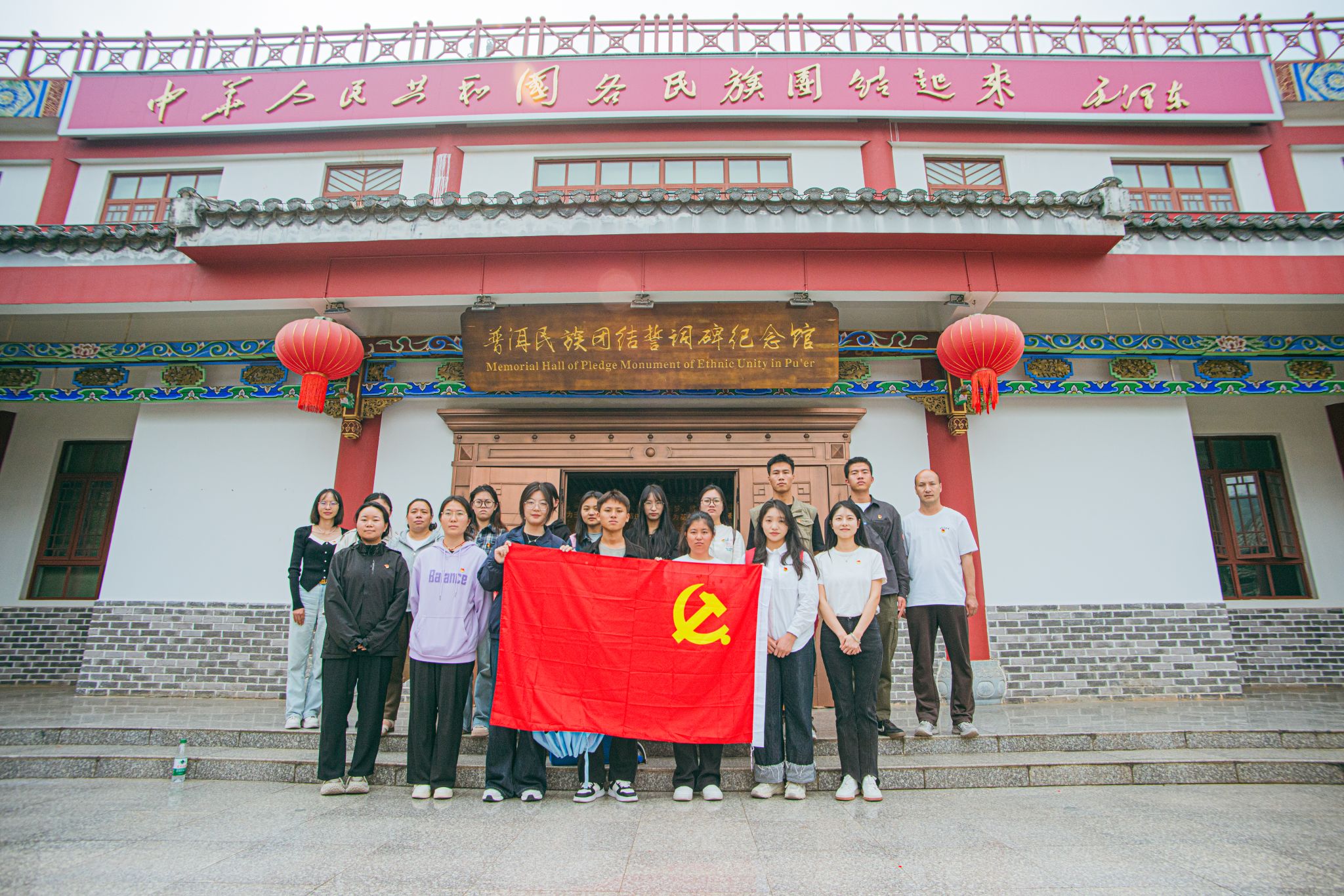 为深入学习贯彻习近平新时代中国特色社会主义思想,传承红色基因,加强民族团结教育,2025 年 4 月 9 日中午,bat365中文官方网站经贸管理与信息技术系第一学生党支部组织党员同志前往宁洱参观民族团结誓词碑。