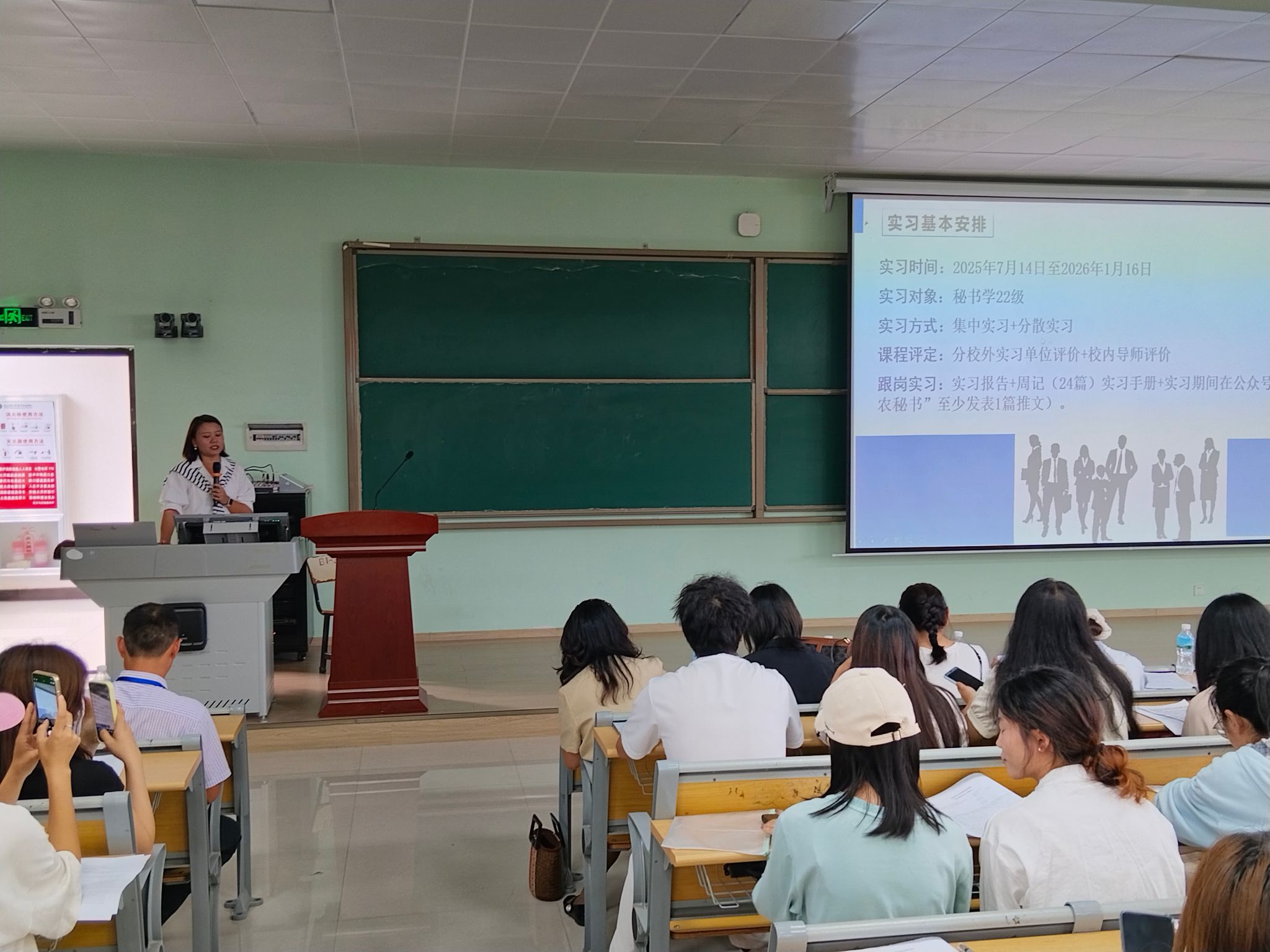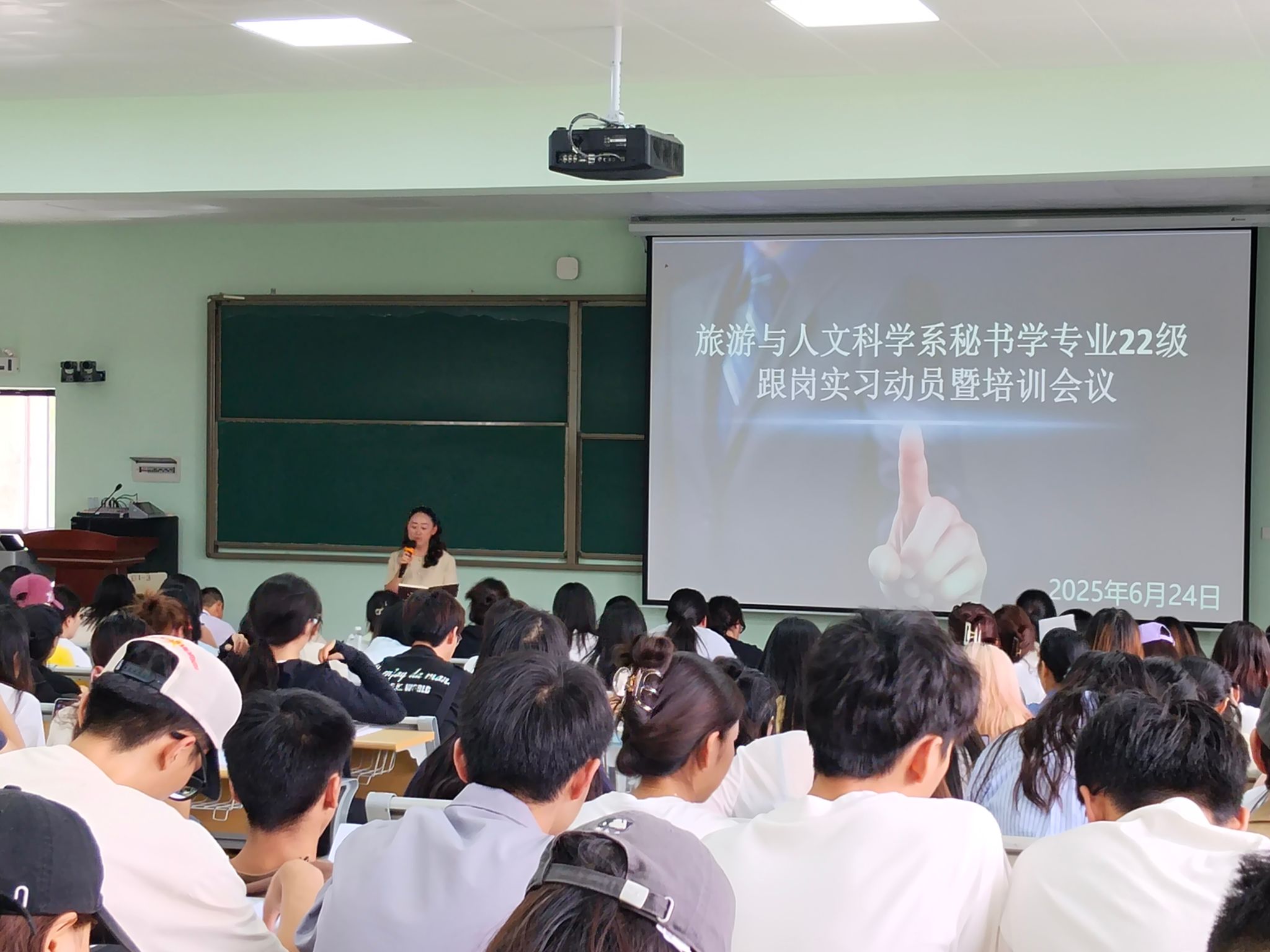 为扎实推进22级秘书学专业的实习工作,全面提升学生的实践能力与职业素养,旅游与人文科学系于2025年6月24日组织召开实习动员暨培训会议。此次会议旨在明确实习目标、规范实习流程、强化安全意识,帮助学生以更充分的准备迎接实习挑战。