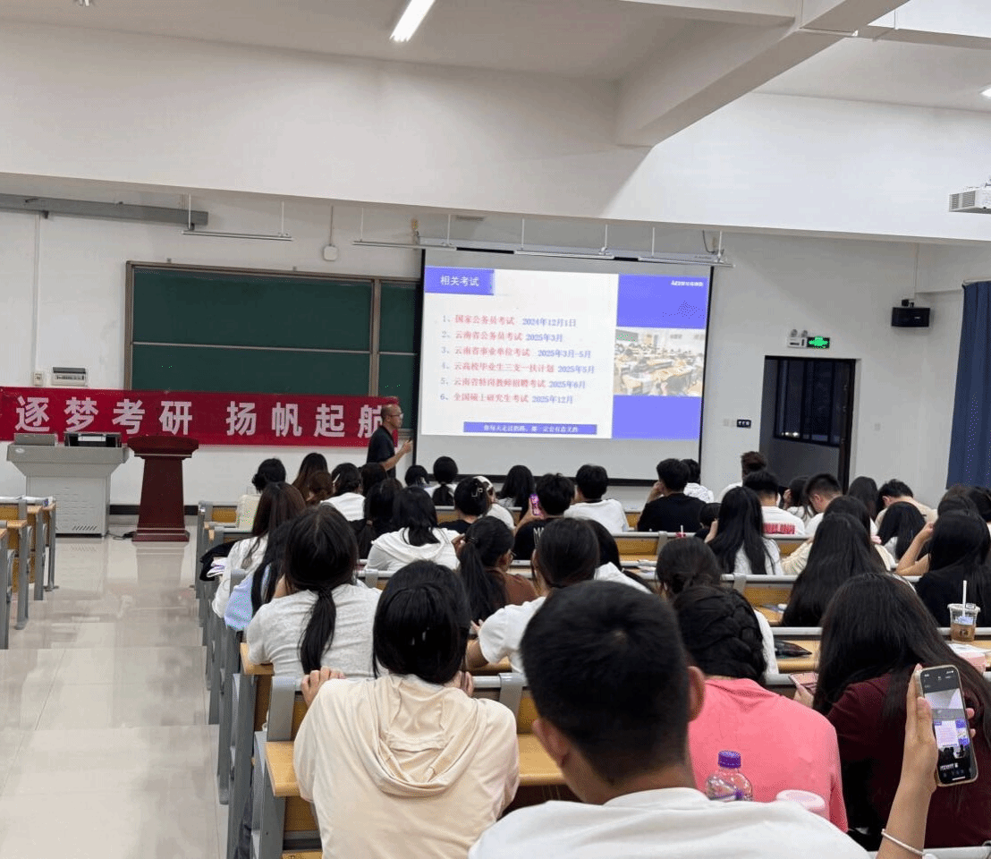 为明确学习目标、增强考研信心,2025年5月16日晚19:30,旅游与人文科学系在喜礼楼401教室召开了“逐梦研途,启航未来”考研动员大会,2023级秘书学专业及2024级旅游管理专业全体同学参与本次会议。本次动员会特邀考研教育领域多年的老师主讲,现场气氛热烈,会议旨在激发学生考研热情,坚定考研信念,为处于备考迷茫期的学子指明方向。