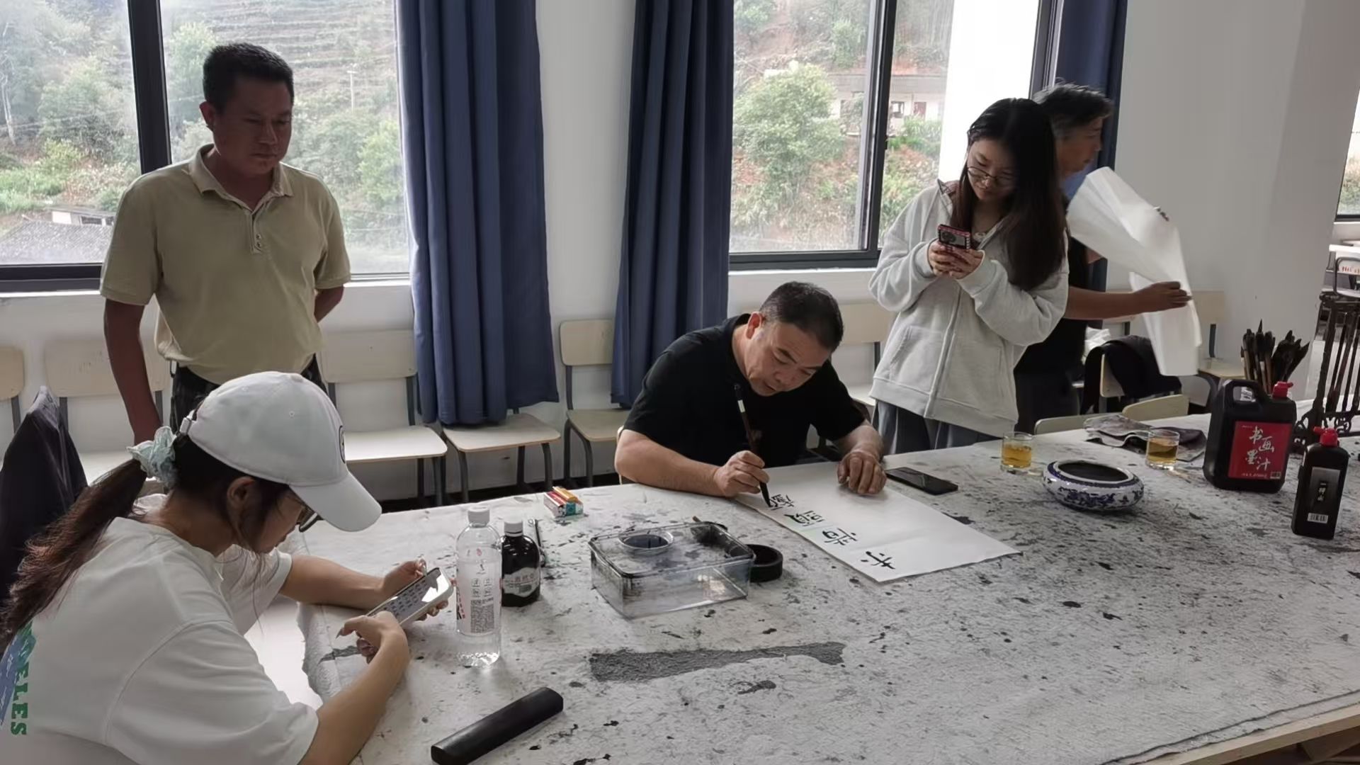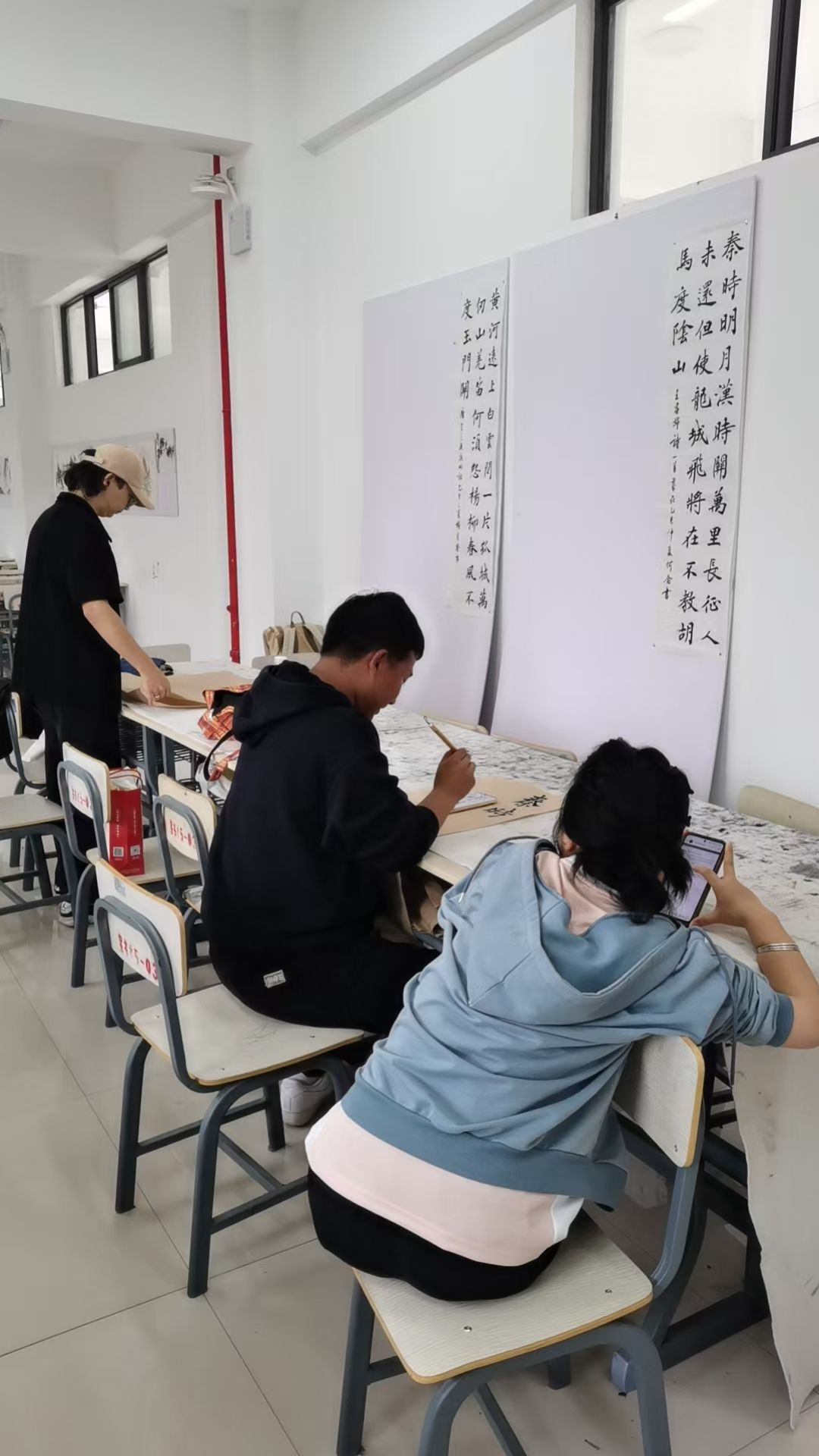 在紧张高效的训练过程中,师生们刻苦钻研,反复打磨作品。经过10天的集中攻关,师生们的参赛作品在创作构思深度、文化内涵把握、书法技巧运用及艺术表现力等方面均取得了显著提升。