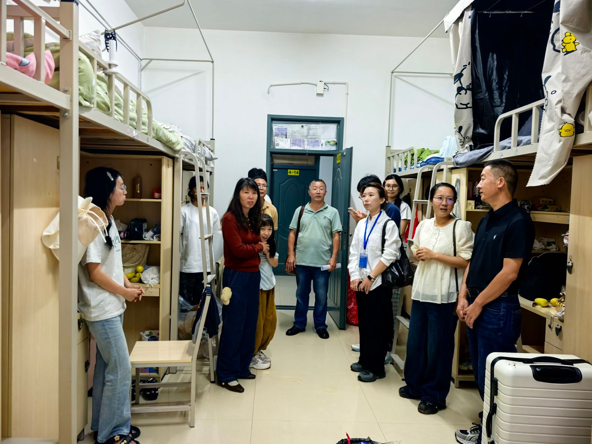 为切实了解2025级新生入学后的生活适应与需求,将学院和系部的关怀落到实处,8月30日19:30,园林专业负责人王永林、风景园林专业邓大华,风景园林导员、班级学业导师一行七人,深入到专业班级新生宿舍,开展“暖心走访”活动。