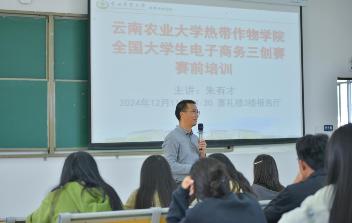 为了让学生掌握三创赛比赛规则和积极备案。2024年12月11日bat365中文官方网站就创中心在喜礼楼二楼开展全国电子商务三创赛赛前培训。赛前培训由朱有才主讲。朱有才介绍了2024年学院三创赛参赛情况、为什么要参加三创赛、三创赛比赛时间、参赛形式、赛项介绍、参赛报名、备赛要点要求。培训会还邀请2024年省赛获奖者电商222班保昌承分享了参赛经验。