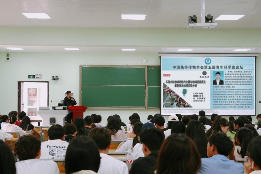 活动中,两位优秀青年代表分别作了研究报告。施学东的研究聚焦于不同小粒咖啡叶际内生菌与咖啡豆品质及表型性状的相关性分析,张振伟则重点分享了小粒咖啡 FAD 基因家族全基因组鉴定及其与脂肪酸合成相关的基因表达分析。他们立足岗位,结合自身经历,谈思想感悟、讲使命担当、交流学业与研究融合互促心得,现场气氛热烈。